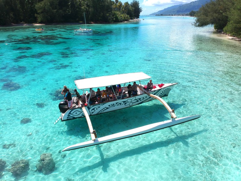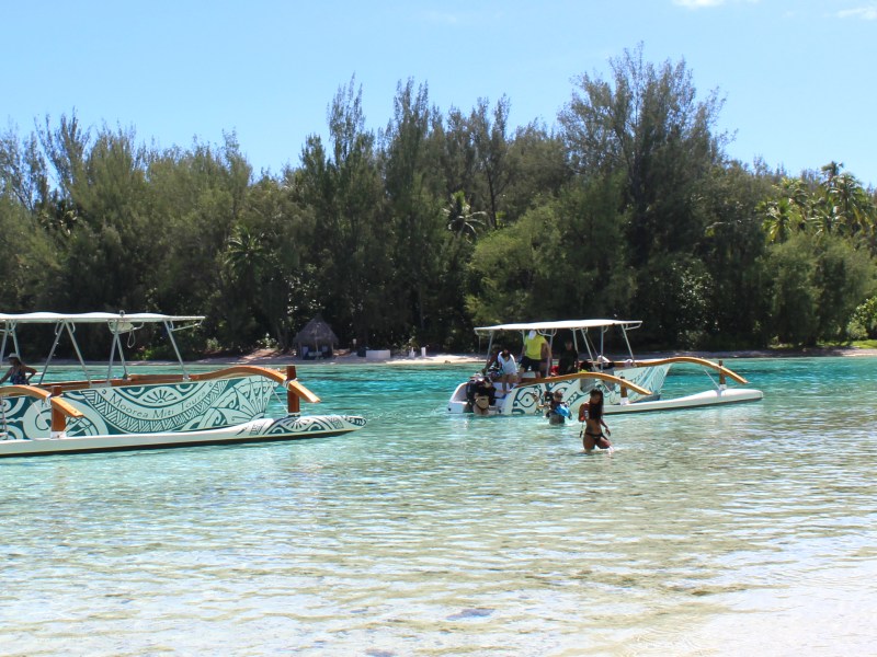 Our boats are 35-foot traditional Polynesian outriggers canoes with all the comforts needed: a hard-top canopy for shade, cushion bench seats, and a sun deck. They also have easy access with a ladder, hand-rail and steps.